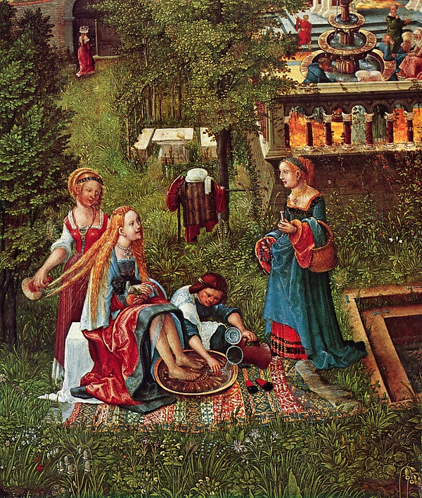 Когда, вымывшись, женщина собралась идти домой, они остановили её и принялись домогаться, утверждая, что если она не согласится на их домогательства, они обвинят её в прелюбодеянии и скажут, что в саду у неё было свидание с молодым любовником.
