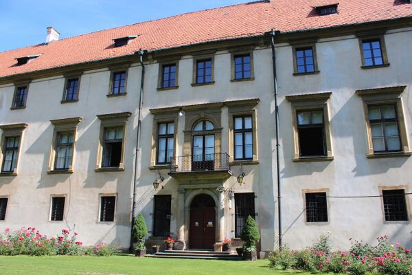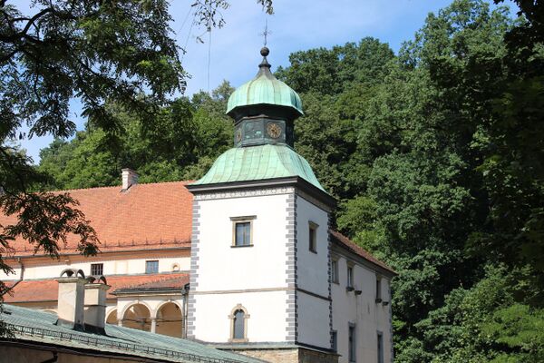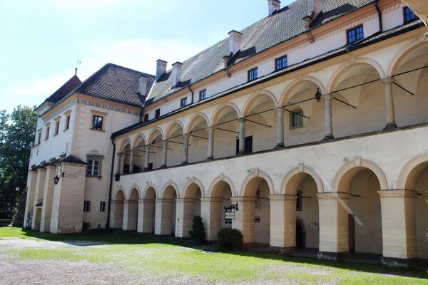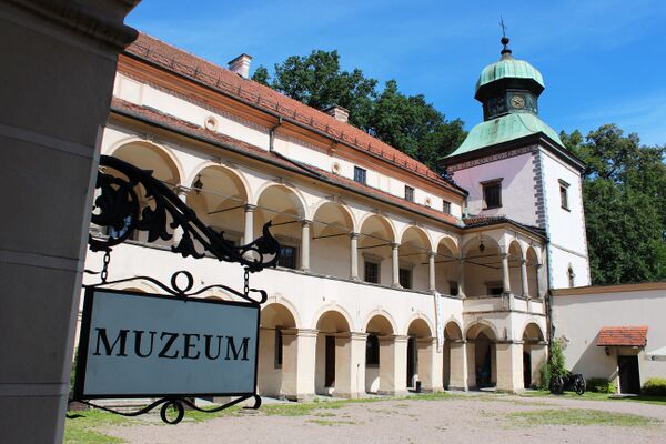 В залах на первом этаже южного крыла замка некогда размещалась богатые библиотечно-музейные коллекции Браницких, а впоследствии Тарновских. Александр Браницкий и его сын Владислав создали свое собрание благодаря закупке различных польских и зарубежных коллекций. Род Браницких собирала различные предметы: картины, скульптуры, графику, военные предметы, масонские памятники, монеты, медали, архивные материалы, исторические и литературные рукописи, старопечатные книги и книги. Библиотечная коллекция, которая насчитывала 55 000 томов (по списку 1932 года), также содержала такие ценные объекты, как пергаментную библии XIII века, украшенную иллюминацией, 22 инкунабулы и 666 томов печатных книг XVI века. Замковая библиотека была важным культурным центром, его ресурсами пользовались в том числе преподаватели Ягеллонского и Львовского университетов.