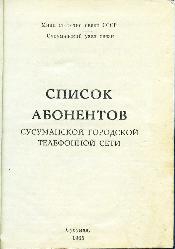 - Список абонентов Сусуманской городской телефонной сети / М. В. Рассохин. — Сусуман: Минсвязи СССР, Сусуманский узел связи (Сусуманская типография Управления по печати), 1965. — 80 с. — 1,200 экз.