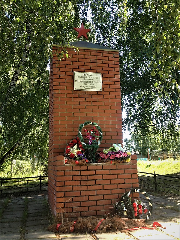 В посёлке Сухая Река, на пересечении улиц Большая Заречная и Малая Заречная, установлена увенчанная пятиконечной красной звездой стела из красного кирпича, на которую помещена табличка с надписью: «Воинам, погибшим в годы Великой Отечественной Войны 1941—1945 гг. От жителей посёлка Сухая Река».