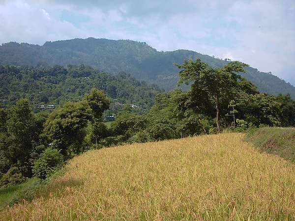 Древнейший способ выращивания риса без полива и ударений. Практикуется и сегодня на высотах от 1000 до 2000 метров при уровне осадков не менее 1000 — 1100 мм за период вегетации.[3] Метод требует минимальных трудовых и материальных затрат, но имеет низкую урожайность. Горный рис выращивается при относительно низких температурах, что способствует высокому качеству. На равнине если средняя дневная температура превышает 29 °C, то качество риса ухудшается.[4].