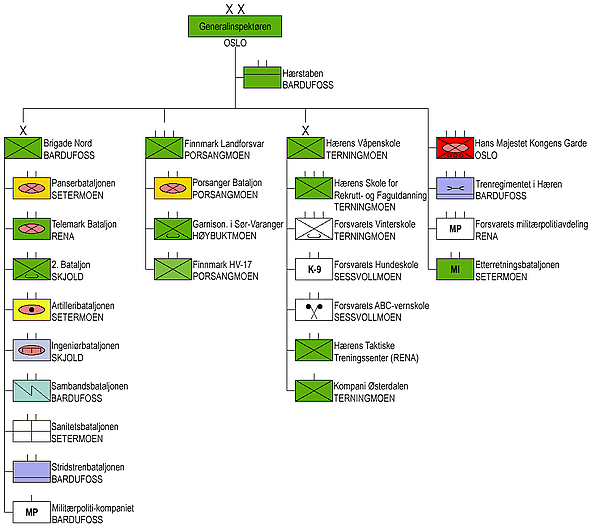Верховный Главнокомандующий — Харальд V Главнокомандующий Вооружённых сил Норвегии — Сверре Диесен |