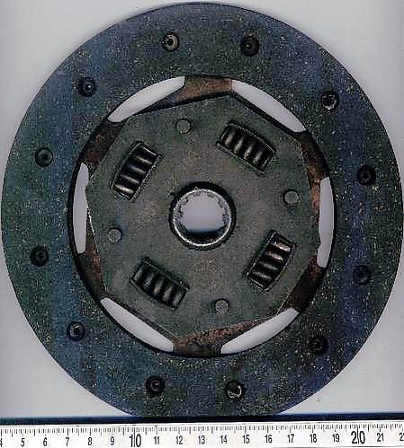 Ведомый диск состоит из диска с пружинными пластинами, к которым приклёпаны или приклеены независимо две фрикционные накладки. Такое крепление обеспечивает их расхождение при выключенном сцеплении, при включении пластины постепенно сжимаются, обеспечивая плавное включение. Центральная часть — ступица — имеет шлицевое соединение и перемещается по первичному валу коробки передач. Ступица соединена с диском подвижно, через демпферные пружины и фрикционные шайбы гасителя крутильных колебаний (видны на снимке), служащие для выравнивания колебаний крутящего момента, возникающих из-за переменных нагрузок и инерции массы при передаче от двигателя к колёсам и обратно. Иногда такие колебания приводят к поломке валов.