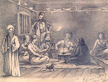 Эта деревня, одна из самых больших, богатых и промышленно развитых в Крыму, располагается у подножия большой горной цепи, пересекающей полуостров. Окружающие деревню горы покрыты лесом, но есть в них и фруктовые сады, и поля, и луга. Красивый ручей протекаетчерез деревню, дома которой обращают на себя внимание аккуратным внешним видом и большей тщательностью постройки, нежели в других местах[50].
