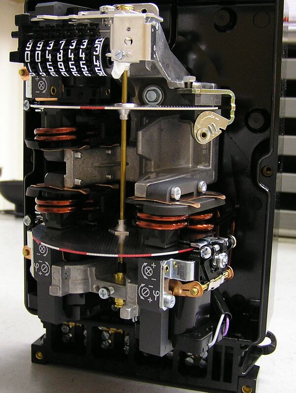 Следовательно, скорость вращения будет пропорциональна произведению силы тока на напряжение и на косинус фазового сдвига — то есть активной мощности. С помощью механической передачи вращающийся диск связан со счётным механизмом.