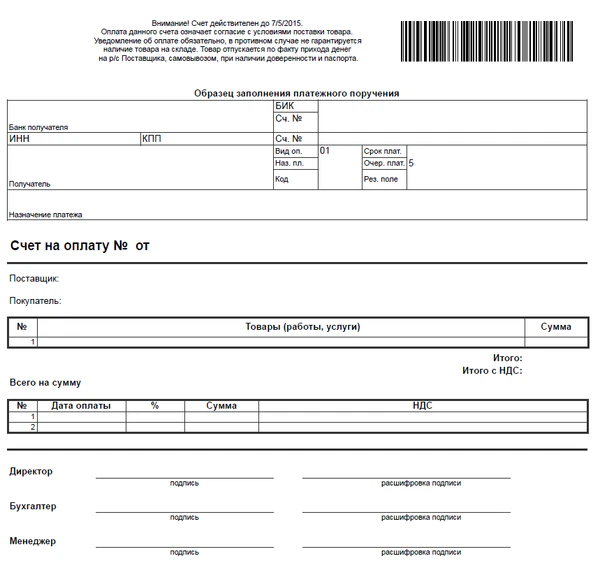 | Счёт на оплату |