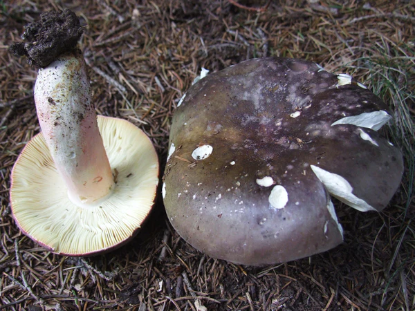 - Сыроежка цельная (Russula integra) и Сыроежка винно-красная (Russula vinosa)[8].