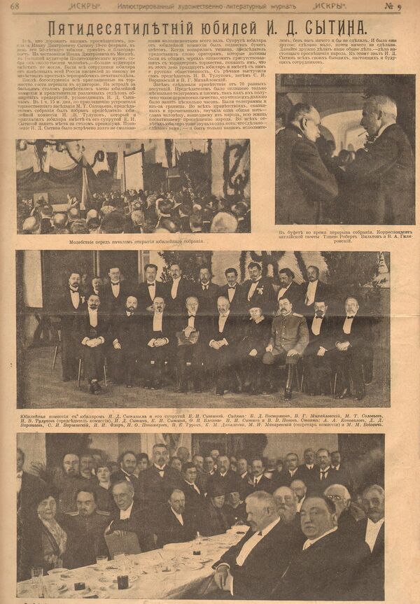 19 февраля 1917 года российская общественность широко отметила 50-летие книгоиздательской деятельности И. Д. Сытина выпуском литературно-художественного издания «Полвека для книги», в подготовке к изданию которого приняли участие М. Горький, А. И. Куприн, Н. А. Рубакин, Н. К. Рерих, П. И. Бирюков — всего около 200 авторов[14]. В Большой аудитории Политехнического музея прошло торжественное заседание во главе с юбиляром и его женой, собралось около 1000 человек, в том числе были все сотрудники юбиляра и его дети.