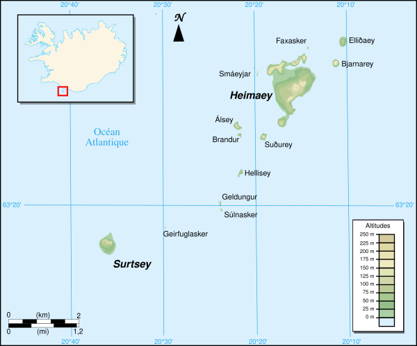 Образовавшийся рядом с ним в результате выброса лав на поверхность в декабре 1965 года малый островок Йоульнир (исл. Jólnir) возвышался на 70 метров над уровнем моря, а через год его размыл океан и от него ничего не осталось[10].