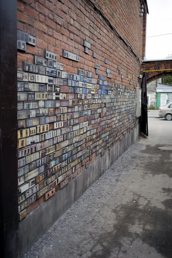 - untitled Самара, 2017, стрит-арт. Выполнена совместно с берлинским художником EVOL, преображающим бетонные блоки, трансформаторные будки и другие объекты в макеты панельных домов[134].