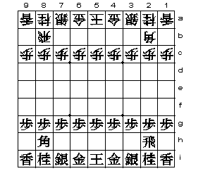 Вертикали нумеруются от верхнего правого угла доски, справа налево, цифрами от «1» до «9». Горизонтали нумеруются также от верхнего правого угла доски сверху вниз, буквами от «a» до «i». Поле на доске, находящееся на пересечении вертикали n и горизонтали Y, обозначается как «nY» (верхний правый угол — 1a, нижний левый — 9i). В японской нотации вертикали нумеруются арабскими цифрами, а горизонтали иероглифическими.
