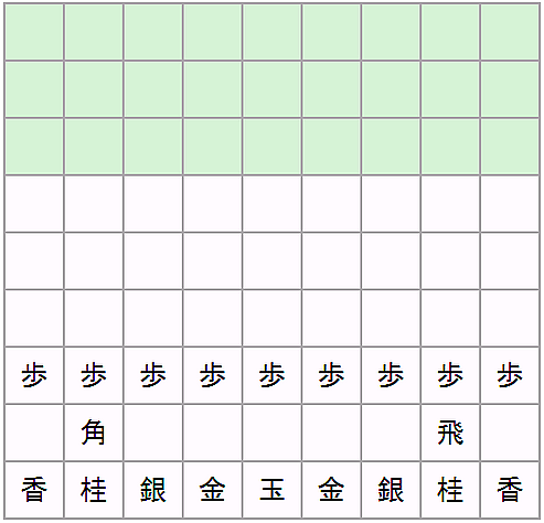 - Правило нифу (яп. 二歩 «две пешки»): запрещено сбрасывать пешку на вертикаль, на которой уже стоит неперевёрнутая пешка того же игрока.