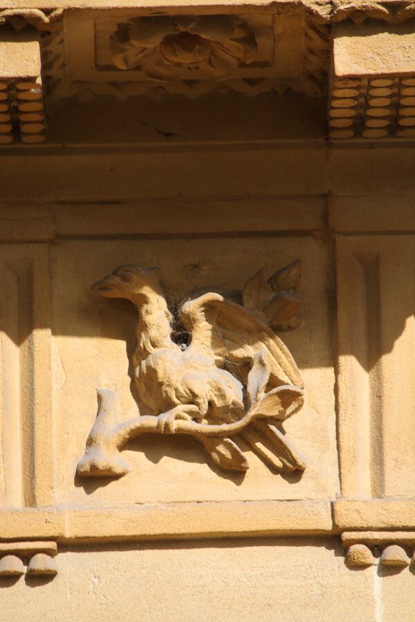 Фасады круговых домов выстроены по принципу ордерной суперпозиции: сдвоенные колонны греко-дорического ордера внизу, выше колонны ионического ордера и на третьем ярусе колонны коринфского ордера. Непрерывный антаблемент создаёт эффект «зрительного вращения». Фриз дорического антаблемента первого яруса украшен чередующимися триглифами и 525 изобразительными эмблемами, в том числе змеями, морскими атрибутами, символами, представляющими искусства и науки, и масонскими эмблемами[8].