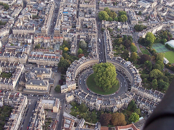 В 1740 году, Джон Вуд Старший обследовал Стоунхендж в Южной Англии, который имеет на внешнем земляном валу диаметр 325 футов (99 м). Убеждённый в том, что местность вокруг города Бат в древности была главным центром деятельности друидов в Британии, Вуд спроектировал «циркуль» с 318 футами (97 м) в диаметре подобно Стоунхенджу[6][7].