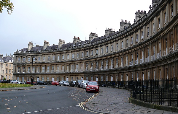 В Бате здания, плотно примыкающие друг к другу, образуют круг с тремя входами. Площадь, первоначально называвшаяся «Королевским кругом» (англ. King’s Circus), построена в среднегеоргианском стиле по проекту архитектора Джона Вуда-старшего в 1754—1768 годах. Джон Вуд Старший умер менее чем через три месяца после закладки первого камня; его сын Джон Вуд Младший завершил строительство[4].
