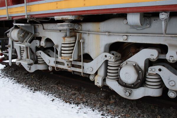 Кузов опирается на две трёхосные тележки. Бесчелюстные буксы соединены с рамой тележки традиционными для советского локомотивостроения двумя резинометаллическими поводками, расположенными на разных уровнях с разных сторон буксы. К нижней части корпуса букс прикреплены буксовые балансиры, на концы которых опираются цилиндрические пружины. На крайние пружины опирается через резиновые амортизаторы рама тележки, а на каждую пару промежуточных пружин — концы балансиров. Внутри балансиров имеются листовые рессоры[2].