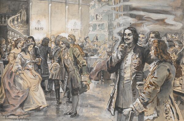 Когда в 1680 году царь Фёдор Алексеевич женился на дочери шляхтича польского происхождения Агафьи Грушецкой, при дворе распространилась европейская привычка курить табак[22]. Но официально легализовал курение только Пётр I в 1697 году. Царь пристрастился к табаку во время Великого посольства и заключил эксклюзивный семилетний договор на поставку табака в Россию с маркизом Кармартена Томасом Осборном. Вернувшись на родину, Пётр I распространил культуру потребления табака как часть европейского образа жизни. Способствовали этому «увещания к российской пастве» патриарха Адриана, поддержавшие нововведения государя[28]. В 1705 году в России была учреждена «казённая табачная продажа по примеру питейной». Но уже через девять лет государственную монополию заменили более выгодной откупной системой. Одновременно открылись первые табачные фабрики — в Санкт-Петербурге и Ахтырке[29]. Потребление табака постепенно становилось повседневной нормой, хотя в Москве ещё долго запрещали курить из-за высокого риска возникновения пожара, а запреты на курение для отдельных категорий граждан существовали вплоть до правления Екатерины II[12][13][22].
