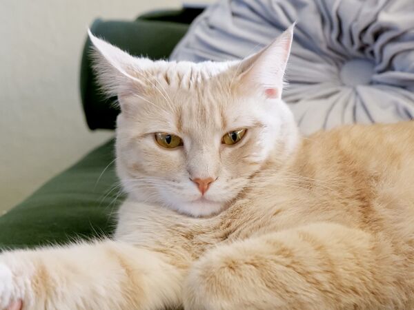 Однако ген агути в первую очередь контролирует выработку черного пигмента, поэтому кошка с аллелем O для оранжевого цвета все равно будет демонстрировать полосатый рисунок. В результате как у рыжих кошек, так и у пятен красного цвета на черепаховых кошках всегда будет виден полосатый рисунок, хотя иногда полосы приглушены — особенно у кремовых и сине-кремовых кошек из-за разбавления пигмента.