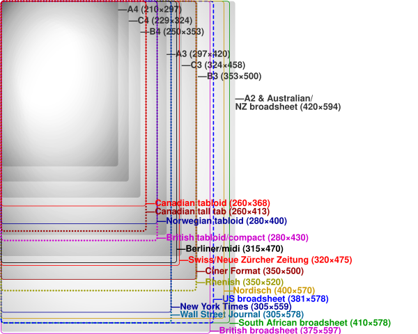 Термин «таблоидная журналистика» (с акцентом на таких темах, как сенсационные криминальные истории, астрология, сплетни о знаменитостях и телевидение) не относится к газетам, печатающимся в этом формате. Некоторые малоформатные газеты с высоким уровнем журналистики называют себя «компактными газетами». Более крупные газеты, традиционно ассоциирующиеся с журналистикой более высокого качества, называются «широкими листами», даже если газета теперь печатается на меньших страницах.