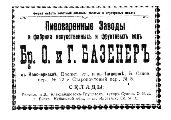 5 апреля 1896 года Х. Ф. Билле скончался от туберкулёза, а в августе этого года 26-летний Герман Августович Базенер женился на его дочери Зельме Билле и стал владельцем его завода в Таганроге. Завод Базенера производил пиво «Мюнхенское», «Пильзенское», «Чёрное». Сын владельца Ростовского пивоваренного завода Август Манн был пивоваром у Германа Базенера в Таганроге. Фирменная пивная завода Базенеров находилась в первом этаже здания по Итальянскому переулку (в послевоенные годы там располагался магазин «Рыба», а сейчас — кафе «Бамбук») и просуществовала до 1925 года[3]. В дальнейшем Г. А. Базенер приобрёл ещё один небольшой пивоваренный завод, принадлежавший Добровольскому, расположенный по Старо-Почтовой улице, дом 5[3].