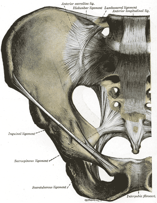 - Крестцово-бугорная связка (лат. lig. sacrotuberale) — идёт от седалищного бугра к латеральным краям крестца и копчика.