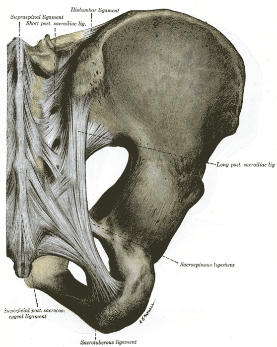 - Крестцово-остистая связка (лат. lig. sacrospinale) — соединяет седалищную ость с крестцом и копчиком.