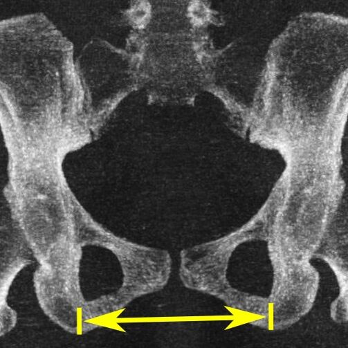 - Поперечный диаметр нижней апертуры — между седалищными буграми — 10,8 (8,1) см