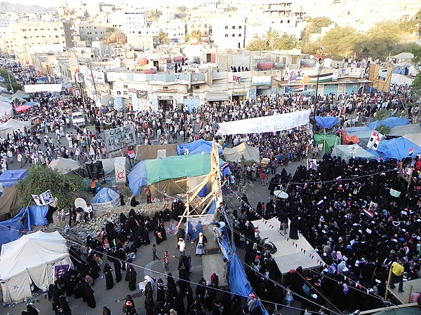 2011: Во время протестов в Йемене в 2011 году в апреле 2011 года Таиз был центром сопротивления власти в Йемене[6][7]. В сентябре и октябре 2011 года Таиз был ареной боёв между правительственными войсками и вооруженными племенными бойцами. 5 октября семь человек погибли в бою от обстрела с миномета[8].