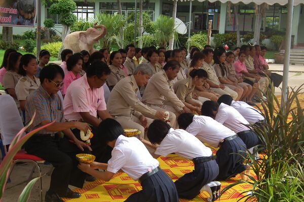 Уважение социальной иерархии имеет важное значение в культуре тайцев. Обычай Бун Хун подчёркивает уважение к родителям, опекунам и учителям[46]. В стране культивируется уважение к королевской династии и королю. Предыдущего правителя Таиланда Пумипона Адульядета Рама IX называли «посланником небес», «отцом» и «кормильцем». Грубостью считается неуважение к тайским деньгам, поскольку на них есть изображение короля Таиланда[47].