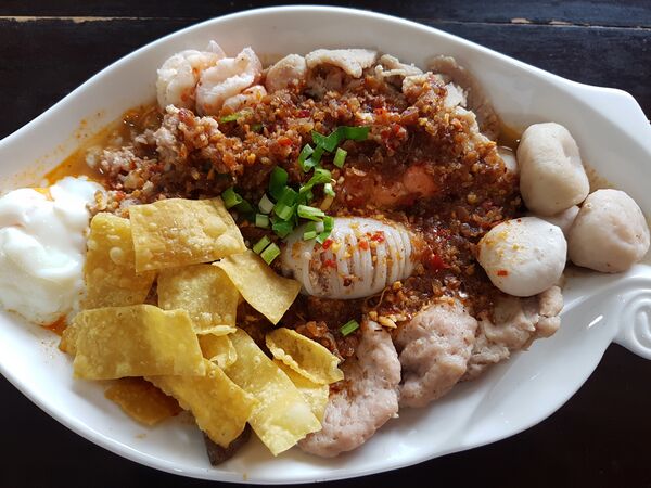 Основу тайской кухни составляет блюда из риса[60]. Рис используется для еды с мясом и рыбой, с морепродуктами и др. Здесь выращивают разные виды риса: белый, чёрный, красный, душистый, клейкий. Другой основой для тайских блюд является лапша, которая может быть пшеничная, рисовая, яичная, из муки бобов мунг и др.