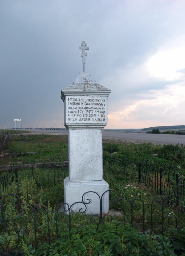 1829 года августа 30 дня на сем месте была поставлена полотняная церковь Ставропольского Калмыцкого войска. В этот же день были крещены Преосвященным Филаретом, архиепископом Казанским и Симбирским, впоследствии митрополитом Киевским, и с протоиереями и иереями его епархии все жители деревни Тайдакова язычники-чуваши, в числе около 370 мужского и 360 женского пола душ в пруду речки Тайдаковки в двух устроенных от плотины особых для каждого пола крещальнях. А 31 августа из них все, поязычески женатые, в тот же церкви по православному обычаю повенчаны иереями соседних с их причтами.