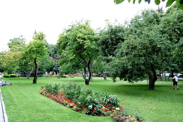 Известно, что на участке сада близ Тимофеевских ворот с XV по XX век находилась церковь Константина и Елены. Первые летописные упоминания о храме относятся к 1470 году и описывают произошедший пожар[9][10]. В 1760-х годах постройки Житного двора и палаты соборного духовенства, относившиеся к церкви Константина и Елены, снесли. На их месте планировалось возвести Большой Кремлёвский дворец по проекту архитектора Василия Баженова[11][12].