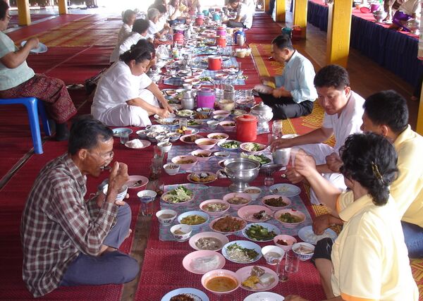 Потребляли пищу обычно руками, без помощи столовых приборов, это и по сей день распространено на некоторых территориях. В начале XIX века после поездок в Европу король Монгкут привнёс в культуру питания использование столовых принадлежностей ложки и вилки. Вилка использовалась только для того чтобы переложить еду в ложку, с помощью которой собственно и едят. Приближать вилку с едой (исключением являются небольшие вилочки для фруктов) ко рту считается неприличным.