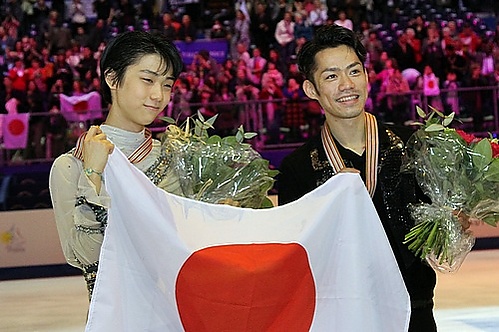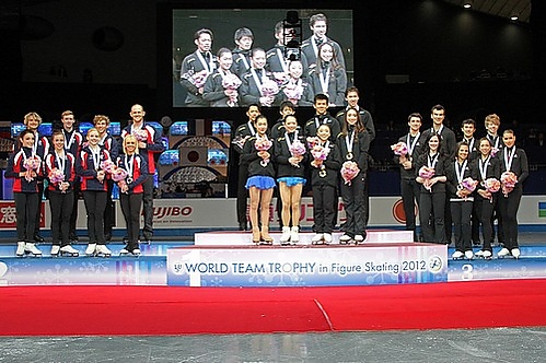 19 апреля, выступая на командном чемпионате мира в Токио, Дайсукэ Такахаси получил 94,00 балла и побил мировой рекорд в короткой программе, принадлежавший канадцу Патрику Чану, на 0,98 балла[12]. На следующий день японец вновь обыграл Чана, хотя до мирового рекорда, установленного канадцем (187,96 балла[97]), добраться не смог. Тем не менее Такахаси сумел исполнить два тройных акселя и четверной тулуп, получив в оценке за компоненты больше, чем Чан, причём двое судей поставили японцу 10 баллов за красоту исполнения и артистизм (англ. performance), а один — за интерпретацию музыки[98]. Такахаси впервые с 2010 года обыграл Чана[99] и принёс сборной Японии 12 баллов в командный зачёт[100], что помогло Стране восходящего солнца впервые выиграть командный чемпионат мира[101].