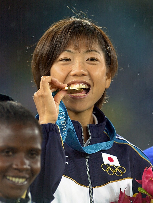 В марте 2000 года спортсменка отобралась в олимпийскую сборную, выиграв марафон в Нагое. На Олимпийских играх в Сиднее она завоевала золотую медаль, установив олимпийский рекорд (2:23:14)[7]. Эта победа стала первым золотом в женском марафоне в истории Японии; за это достижение Такахаси была удостоена Премии Народного Почёта.