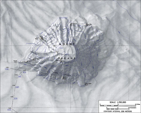 Вблизи вулкана не проходят крупные воздушные маршруты или дороги снабжения антарктических станций[6], а в некоторые части горного массива можно добраться только на вертолёте[7]. Название вулкана происходит от takahē, нелетающей, почти вымершей птице из Новой Зеландии; члены экспедиции Мари Бэрд Лэнд Траверс 1957—1958 годов самолёт, который привозил им припасы, шутливо прозвали «такахе»[8]. Вулкан Такахе впервые люди посетили в 1957—1958 годах, а затем снова в 1968[9], 1984—1985 и 1998—1999 годах[10].