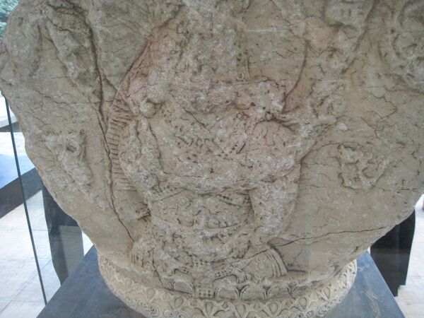 Четвёртая фигура на рельефе — бог Митра, держащий в руках длинный брус, стоя на цветке лотоса. Он является свидетелем коронации нового правителя[5].