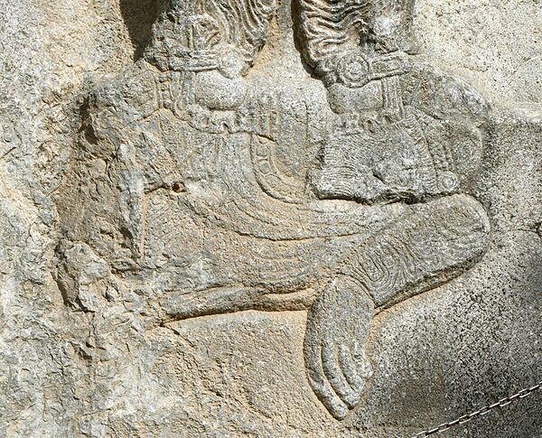Местные жители интерпретировали этот рельеф как сцену победы первых сасанидских царей над Артабаном IV, последним правителем Парфии. Фигура Митры стала основой для визуального представления пророка Зороастра.