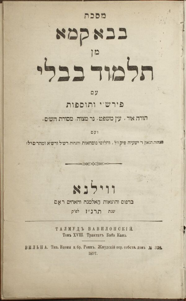 Первое издание Талмуда на территории Российской империи было предпринято братьями Шапиро в городе Славута в 1801—1806 годах[19]. Большая работа по редакции Талмуда проделана перед выпуском знаменитого Виленского издания Талмуда (1880), она была осуществлена коллективом раввинов литовских йешив и издательством «Вдова и сыновья Ромм». Это издание положено в основу почти всех последующих.