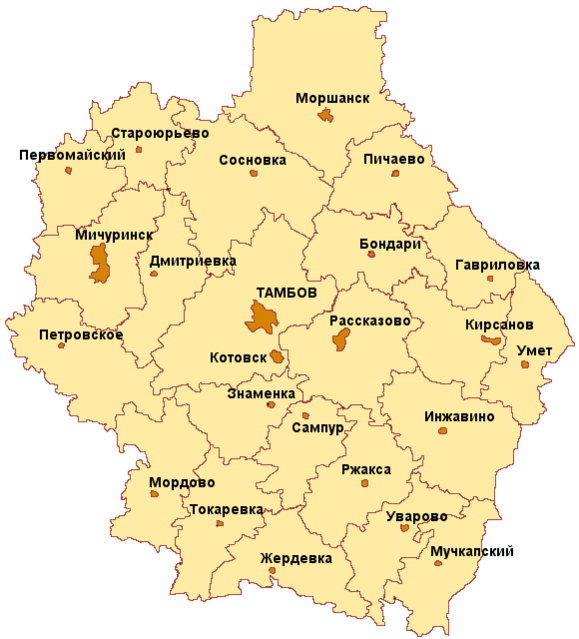 | Крупнейшие города | Тамбов, Мичуринск, Рассказово, Моршанск, Котовск | ||||