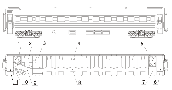 Тамбуры железнодорожных пассажирских вагонов — закрытая площадка пассажирского железнодорожного вагона между наружными и внутренними входными дверьми[11][12][13][14]. Предназначены для защиты от проникновения в салон вагона наружного воздуха, шумоизоляции. Обычно каждый тамбур имеет 3 наружные входные двери (по бокам вагона и торцевую) и 1 внутреннюю дверь в салон вагона. В тамбурах выделялось место для курения. Различают «рабочий тамбур» — со стороны служебного купе проводников в плацкартных, купейных вагонах, вагонах СВ, люкс, ресторанах и у кабины машиниста в вагонах пригородных электричек. С рабочего тамбура производится топка котла для обогрева вагона на неэлектрифицированных участках железной дороги. Также в тамбурах оснащено место для хранения запаса топлива (угля, дров). Тамбуры оснащены стоп-кранами экстренного торможения и ручным тормозом для остановки вагона в случаях расцепки от состава или неисправности пневматической системы экстренного торможения.