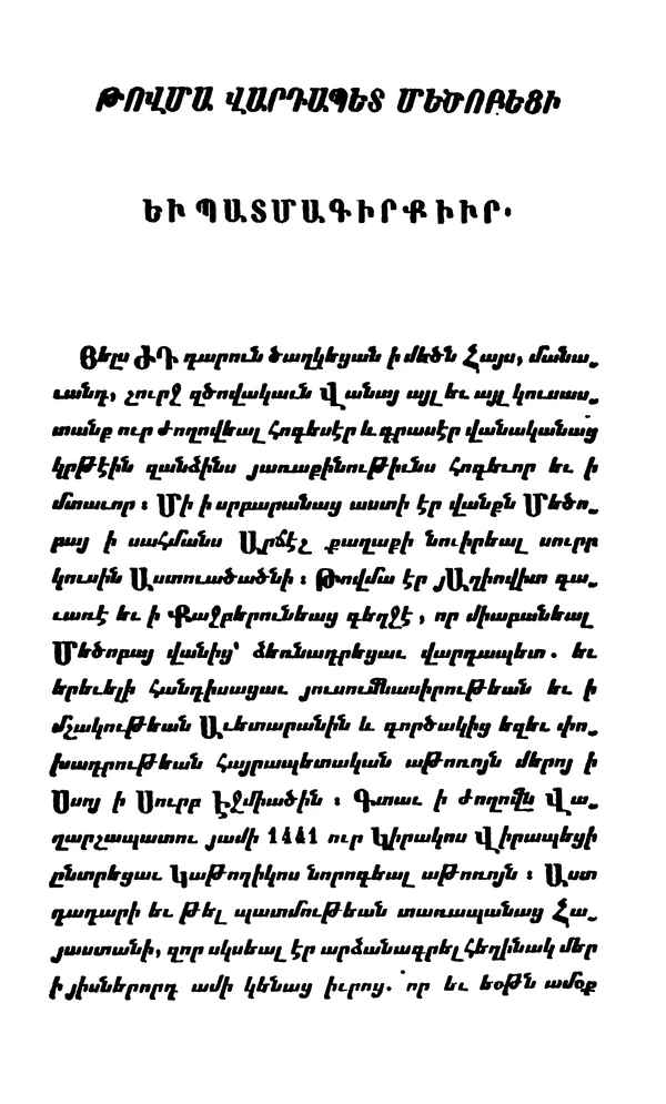 - Фома Мецопский. История Тимур-Ланка и его преемников / Пер. с древнеарм. Т. Тер-Григоряна, А. Баграмяна. — Баку, 1957. — 104 с.