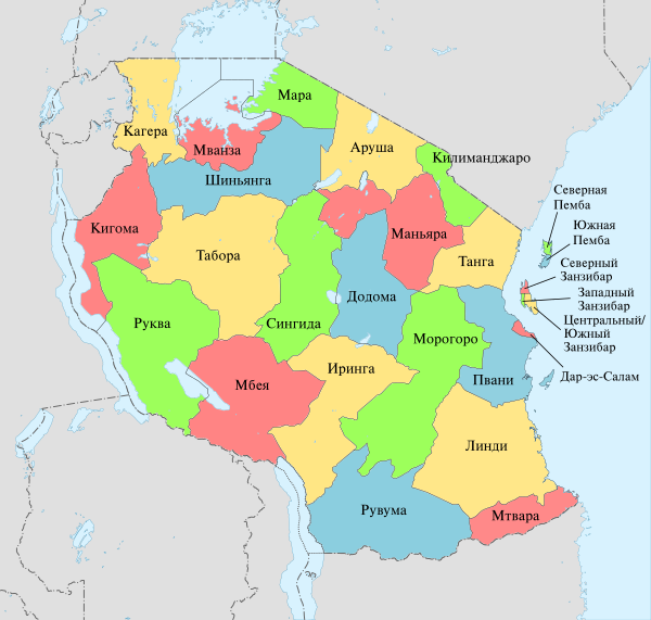 Танзания делится на 31 область[11] (суахили мкоа):