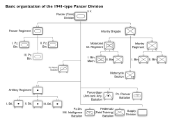 | Танковый полк[~ 1] | 2600 человек | 28 танков Pz.IV, 68 Pz.III и 30 Pz.II, 16 командирских машин, включая PzBef[~ 2] |