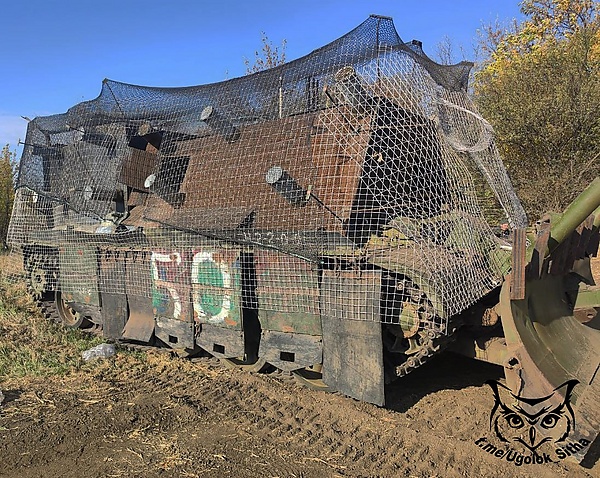 Выполнен на базе повреждённого танка Т-72, у которого был перебит механизм поворота башни. Усиленная броня изготовлена бойцами из подручных материалов, тем не менее она позволила перекрыть наиболее уязвимые для удара БПЛА зоны. К одному из критических недостатков машины российские военные эксперты отнесли ограниченную зону обзора для экипажа[3].
