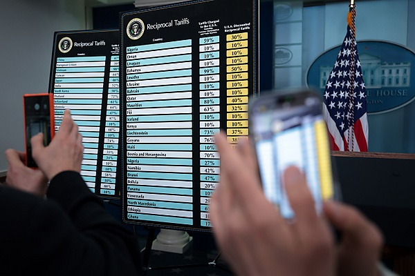 Дональд Трамп лично объявил о введении новых импортных пошлин, достигающих 50 % для ряда стран, включая крупных торговых партнеров, таких как Китай (34 %), Европейский союз (20 %) и Индия (26 %), а также установил минимальный базовый тариф в 10 % для всех остальных, мотивируя это необходимостью восстановления экономики США и прекращения «грабежа» со стороны других государств; новые пошлины, вступающие в силу поэтапно с апреля, также включают повышенные тарифы на импорт автомобилей (25 %) и автозапчастей, причем размер пошлин для каждой страны рассчитывается исходя из их собственных тарифов на американские товары; данное решение вызвало резкую негативную реакцию в мире, с обещаниями ответных мер от ряда стран и опасениями начала глобальной торговой войны[23]. 8 апреля 2025 года журналист Fox Business Эдвард Лоуренс сообщил, что США вводят пошлины в размере 104 % для Китая, так как страна не сняла ответные меры на американские пошлины в размере 34 %, начало их действия — 9 апреля 2025 года[24].