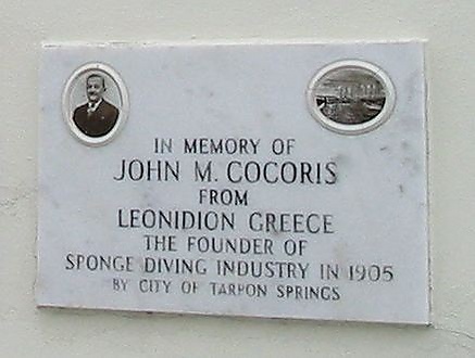 В 1905 году Джон Кокорис познакомил жителей Тарпон-Спрингса с губковым дайвингом (добычей губок), и нанял на работу ныряльщиков из Греции. Первые ловцы губок прибыли с островов Саронического залива Эгина и Идра, однако уже вскоре их численно превзошли выходцы с островов Калимнос, Сими и Халки архипелага Додеканес. Губковая отрасль в скором времени превратилась в одну из лидирующих морских отраслей в штате Флорида и наиболее важный бизнес в городе Тарпон-Спрингс, ежегодно принося доходы в размере миллионов долларов. Съёмки приключенческого фильма «Под рифом длиной в 12 миль» 1953 года, в котором главные герои предприниматели Майк и Тони Петракисы занимаются губковым бизнесом, проходили на Ки-Уэсте и в Тарпон-Спрингсе[8].