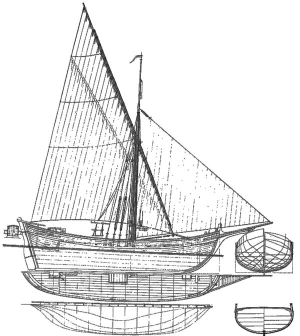 Но все эти корабли объединяет латинское парусное вооружение (именно латинское[2], а не гафельное, люгерное или другие разновидности косого паруса) на всех мачтах, иногда с брифоком[2], и более широкие и полные обводы корпуса, чем у шебек или галер[7].