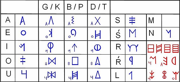 На письме различались 5 гласных: «a», «e», «i», «o», «u»; отмечено присутствие дифтонгов /ai/ и /oi/, а также использование знака «u» в значении полугласного /w/. Как и в иберском языке, различались знаки для трёх серий смычных: велярных, дентальных и лабиальных; при этом надо отметить, что хотя их принято обозначать в транскрипции глухими звуками «k», «t» и «p», достоверно о них неизвестно, были ли они глухими или звонкими. Аналогично, для звука, который передаётся в транскрипции как «b», речь не обязательно идёт о звонком, он мог быть и глухим (таким образом, одна и та же комбинация букв может быть транскрибирована и как «paare», и как «baare»). Хорошо задокументировано наличие двух согласных «l» и «n», а также двух разновидностей «s» (одна из них, по-видимому, была палатализована) и двух различных «r» (различие между ними непонятно). Отмечается, что знак «m» используется только перед «u», а возможный аспирант типа «h» встречается только перед «a».