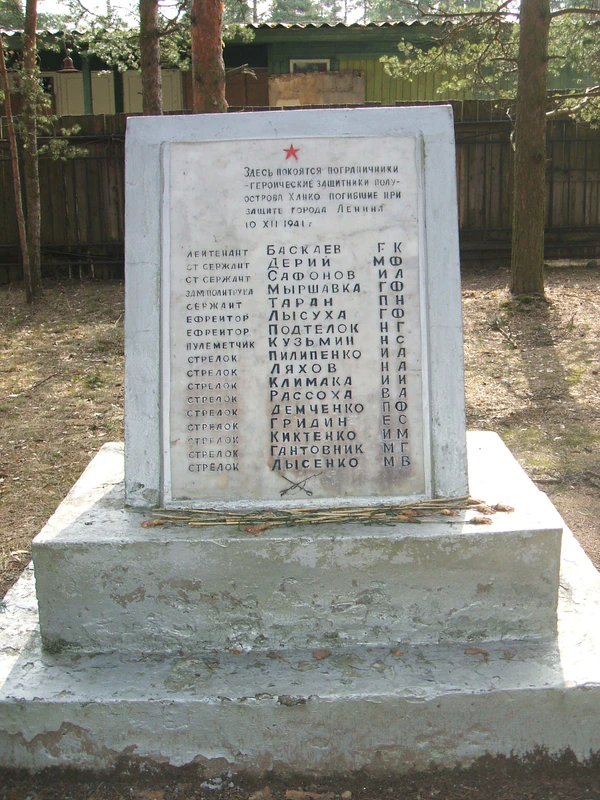 Как там оказалась могила защитников о. Ханко? После эвакуации наших войск с м. Гогланд и островов архипелага в том числе и о. Ханко войска переезжали на северные позиции защиты Ленинграда. У п. Тарховка поезд был 10 декабря 1941 года подорван. 17 погибших в этой диверсии защитников о. Ханко похоронили на ближайшем кладбище в п. Тарховка.